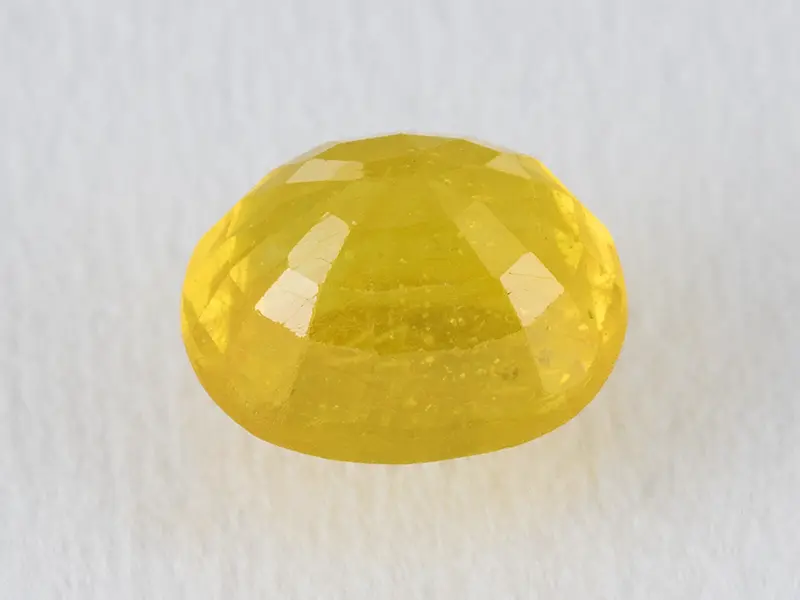 This 5.12 ratti pukhraj stone is a beautiful, certified 4.66 carat Bangkok Yellow Sapphire. It is an excellent choice for anyone looking to buy an original Pukhraj stone online in India. With its vibrant yellow colour and classic oval cut, this gem is perfect for astrological purposes or as the centerpiece for a beautiful ring or pendant. At Ratna Gems, we provide a lab certificate to guarantee the authenticity of every gemstone you purchase.
