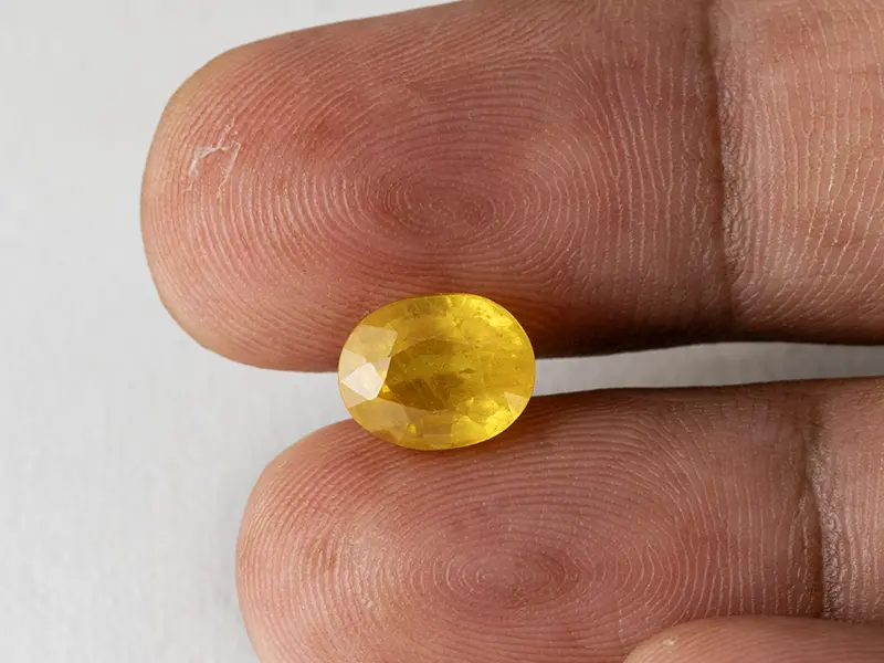 In Vedic traditions, the Pukhraj stone is connected to the planet Jupiter (Guru), which is associated with wisdom and prosperity. A quality gemstone like this 5.12 ratti pukhraj stone is highly valued. To learn more, please read our Yellow Sapphire (Pukhraj) Buying Guide.