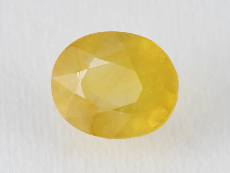 This 7.68 ratti pukhraj stone is a beautiful, certified 6.99 carat Bangkok Yellow Sapphire. It is an excellent choice for anyone looking to buy an original Pukhraj stone online in India. With its vibrant yellow colour and classic oval cut, this gem is perfect for astrological purposes or as the centerpiece for a beautiful ring or pendant. At Ratna Gems, we provide a lab certificate to guarantee the authenticity of every gemstone you purchase.