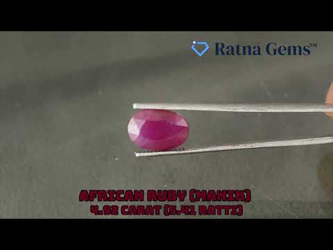 African Ruby (Manik) 4.92 Carat (5.41 Ratti) is a natural loose ruby with a faceted oval profile and a rich red appearance. This gemstone is suitable for ring and pendant designs where buyers want a genuine ruby with strong face-up presence.