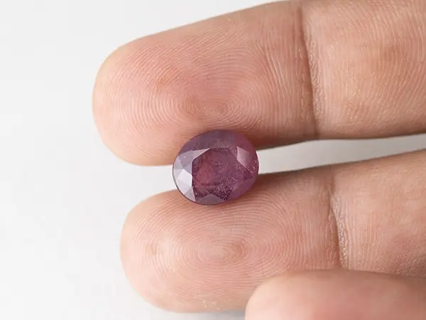 High-resolution photos and a short video are provided so you can examine this Bangkok Ruby Stone (Manik) 6.9 Carat (7.58 Ratti) closely before purchase. The white background and neutral lighting are used to keep the colour representation as realistic as possible. The stone is slowly rotated in a tweezer to show the ruby from multiple angles.