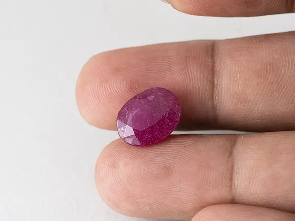 High-resolution photos and a short video are provided so you can examine this Bangkok Ruby Stone (Manik) 8.8 Carat (9.67 Ratti) closely before purchase. The white background and neutral lighting are used to keep the colour representation as realistic as possible. The stone is slowly rotated in a tweezer to show the ruby from multiple angles.