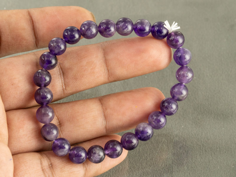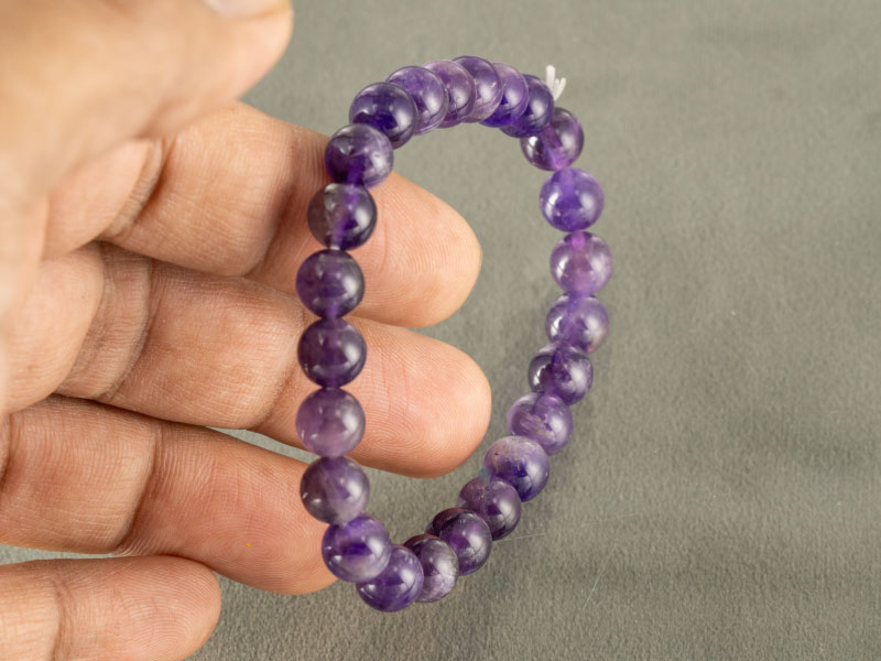 If you are planning to buy amethyst bracelet online, Ratna Gems brings you an elegant gemstone accessory made with high-grade, natural Amethyst quartz. This bracelet is strung with polished 8mm beads and weighs approximately 95 carats. Known for its rich purple color and durability, Amethyst is one of the most admired varieties of quartz for both jewelry and astrology.