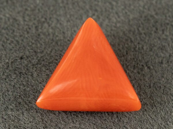 This triangular coral gemstone is effective for ring settings where geometric shape visibility is preferred and also works well in pendant formats. Gold and copper are frequent choices in traditional Mars-linked styling, while silver settings are suitable for modern designs. Bezel or protected-edge mounting is practical for improving durability in daily wear.