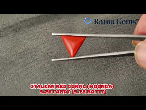 Italian Red Coral (Moonga) 5.26 Carat (5.78 Ratti) is a natural coral gemstone suited to buyers seeking a substantial triangular cabochon with strong red presence. The polished non-faceted finish and geometric triangle silhouette work well for statement rings, pendants, and Mars-associated Moonga jewelry where face-up size and clean outline matter.