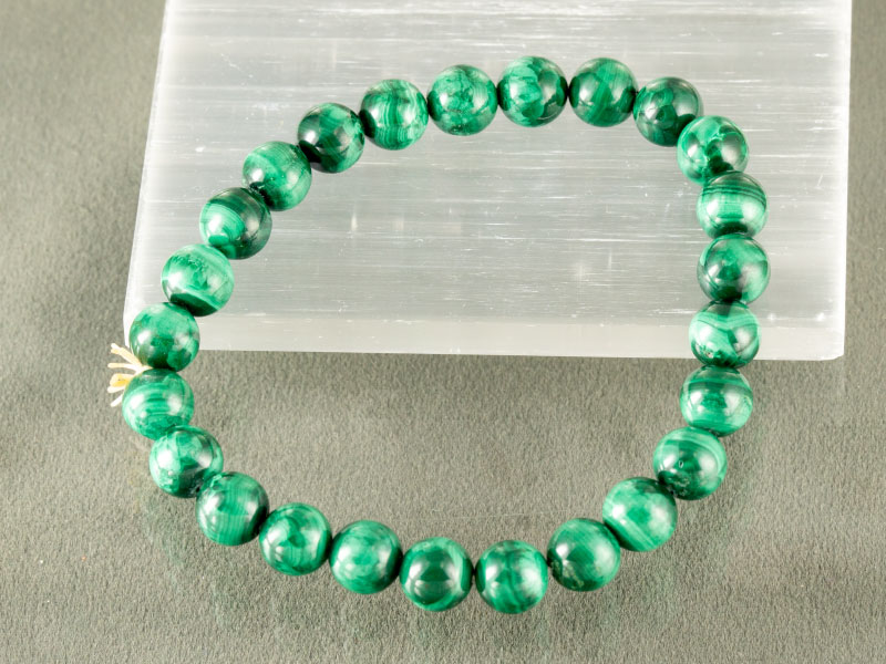 Malachite is a copper carbonate hydroxide mineral. It is a powerful “Stone of Transformation” that amplifies both positive and negative energies, grounding the wearer. People buy Malachite bracelets to break unwanted ties and outworn patterns. It opens the Heart Chakra to unconditional love.