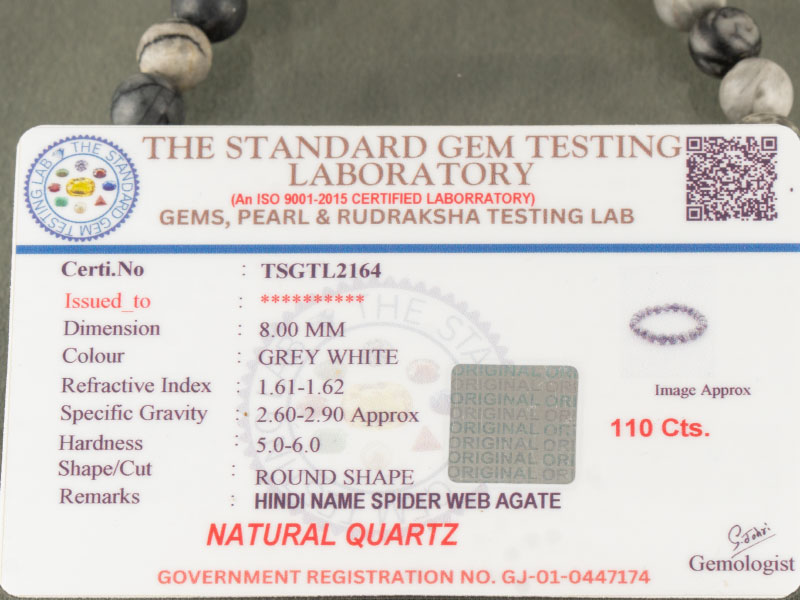 Each bracelet is supplied with an ISO certified lab report, confirming that the gemstone used is natural Spider Web Agate and not synthetic or dyed material.