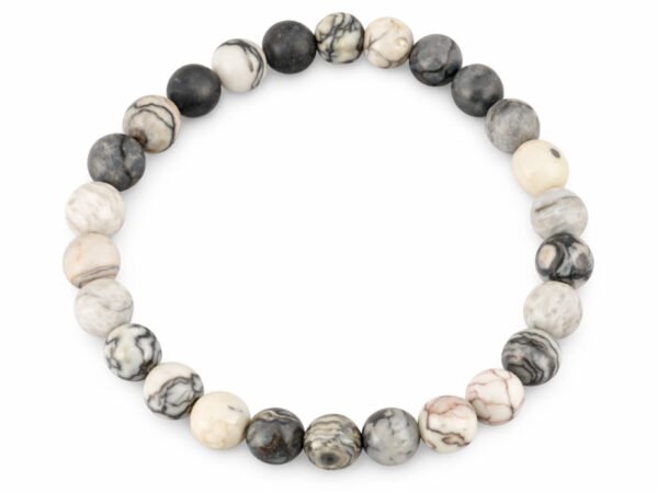 Spider Web Agate is a naturally patterned variety of agate quartz, recognized for its web-like inclusions and neutral colour tones. It is commonly used in bracelets and jewellery due to its durability, aesthetic appeal, and grounding visual character.
